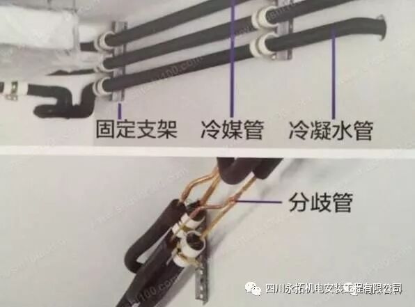 ① 所有的焊接点应该是铜管与分歧管的连接处进行焊接,不存在铜管与铜管焊接。要求必须用专用分歧管:要求分歧管后至少50CM才能转弯。