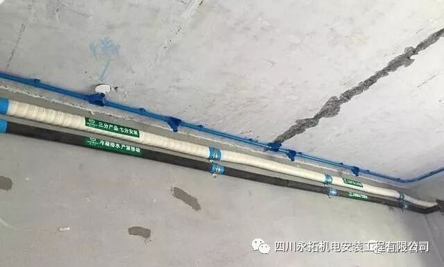 标准流程:安装师傅进场按照图纸现场再核对(机型,定位图纸)排水位置,必须就进排水优先。再安装吊码定位:要求每90-100CM之间必须两个吊码,以确保冷凝管道的横平竖直。必须用厚不锈钢吊码,90-100CM之间必须两个吊码固定,彩色管卡颜色区分,气管,液管,冷凝水管,粘贴警示标签,为后面工种施工人员更好的施工。