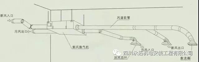 需要注意的是,靠近室外的进、出风管道上都要包一层保温管或者保温棉,避免因为室内外温差大产生冷凝水。